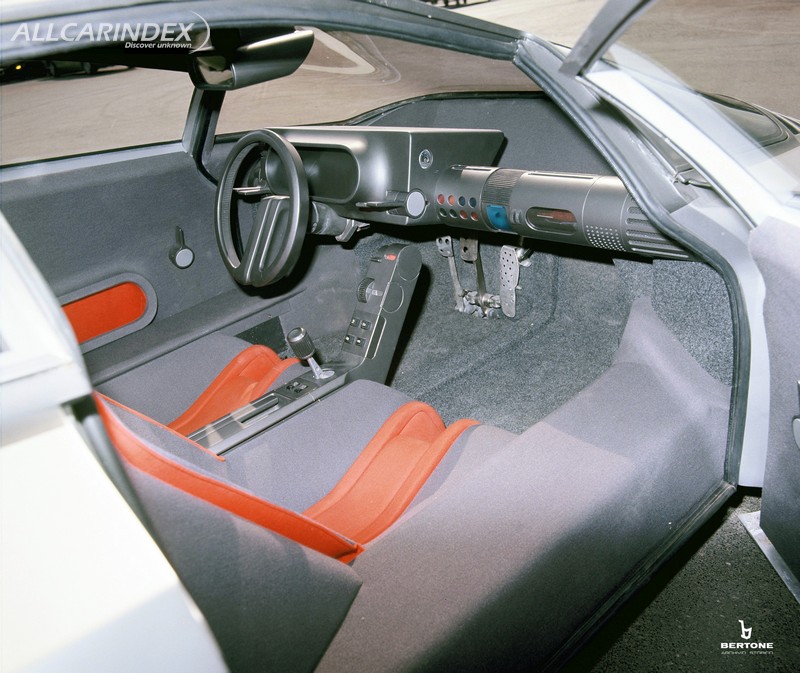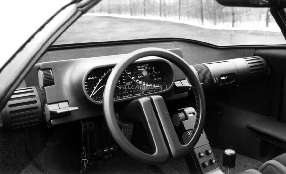 Inside, Bertone designed innovative instrumentation for the ‘Navajo,’ consolidating all vital information for the driver in one dial. Engine revs were related to power distribution and torque, while speed was correlated with braking distance in various scenarios. The dial also displayed the position of the front spoiler and acceleration levels in “G” units, in addition to standard information like water temperature and oil pressure.