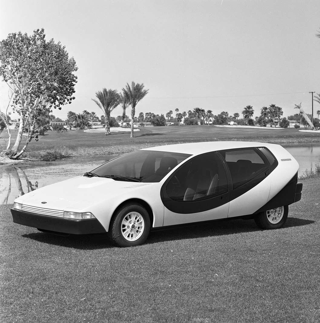 The Megastar featured a four-door wedge-shaped aluminum body based on the European Granada, with the capacity to accommodate up to five people. It was powered by a European three-liter Ford V-6 engine and had independent front and rear suspension systems.
