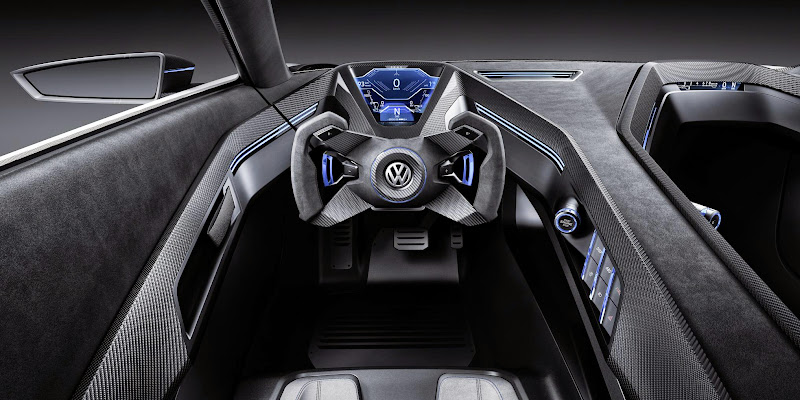 The interior of the Golf GTE Sport was designed for a true sports car experience, featuring two separate racing bucket seats with five-point belts, a carbon-clad steering column, and a three-level instrument display specifically tailored for the driver's workspace. The lightweight carbon body, innovative design, and futuristic cockpit made the Golf GTE Sport a unique and thrilling concept car.