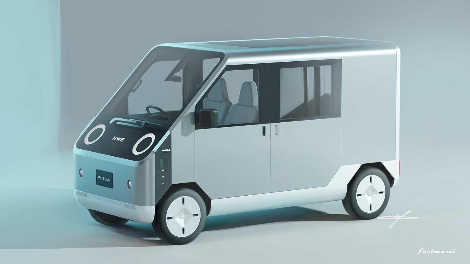 The HWE Puzzle, a Fortmarei-designed commercial EV in the KEI car segment, was unveiled at the Tokyo Mobility Show 2023. Puzzle transcended the traditional role of the commercial vehicle, supporting society in daily life and in times of disaster with unexpected additional features, expressing HWE’s core values of social contribution, sustainability, and connectivity. The production version was scheduled to launch in 2025.