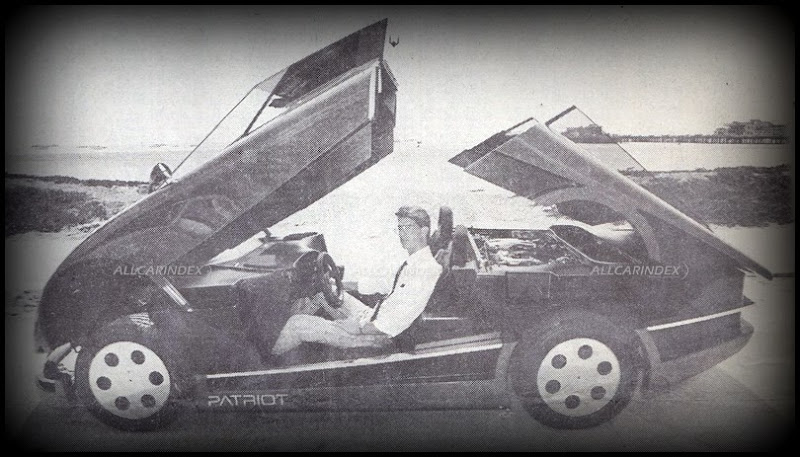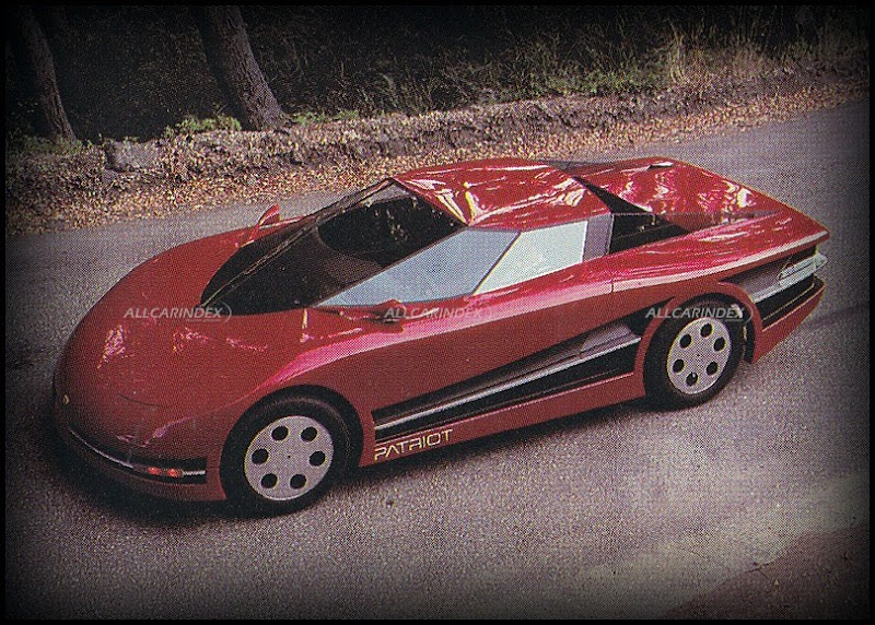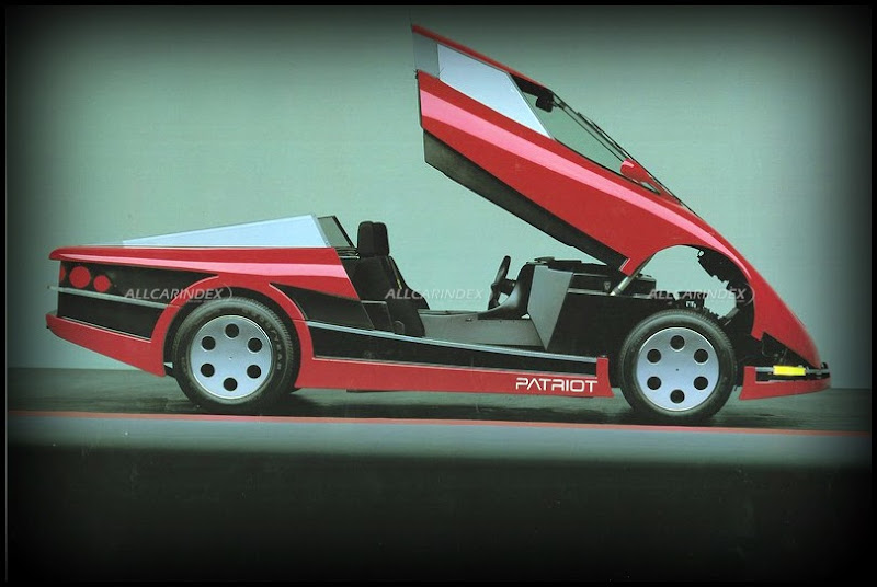 at the beginning of the next year a construction of the patriot began. patriot was built on an extensively strengthened pontiac fiero gt chassis. combining advanced styling and latest technology, its bodywork exquisitely finished in fiberglass consisted of 22 molded panels and was mounted onto three high-tech, carbon-reinforced subframes. the first one hinged at the front to give an access to the cockpit while the rear one was for the bonnet which lifted back to open access to the engine compartment. a huge unit composed of what was supposed to be doors as well as windshield and side glasses was electronically assisted by thompson-saginaw ballscrew actuators. the entire canopy lifted up and forward to open a well-finished interior including wraparound panel, momo steering wheel and recaro seats.