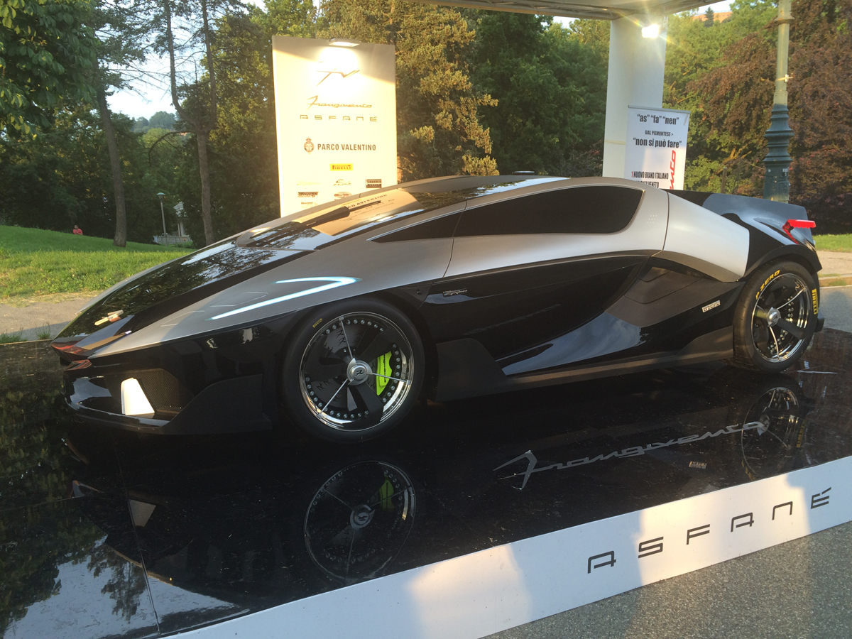 Show at Parco Valentino, was a non-running prototype, but the company says the car will get a supercharged V10 850hp engine coupled with a 7-speed dual clutch gearbox and all wheel drive. Asfane should be capable to reach 100 km/h in less than 3 seconds and develop a top speed over 300 km/h.