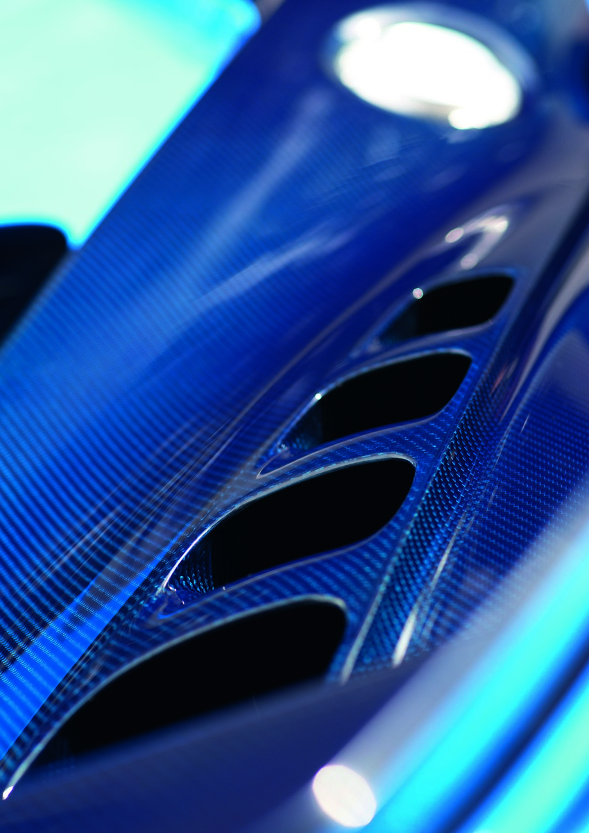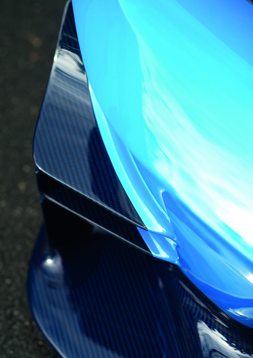 an interesting detail on the roof is the naca duct, which, with its contrasting light blue finish, is not only strikingly aesthetic, but is also the most aerodynamic way to bring air into the engine at roof level without creating turbulence in the inflow of the rear wing.