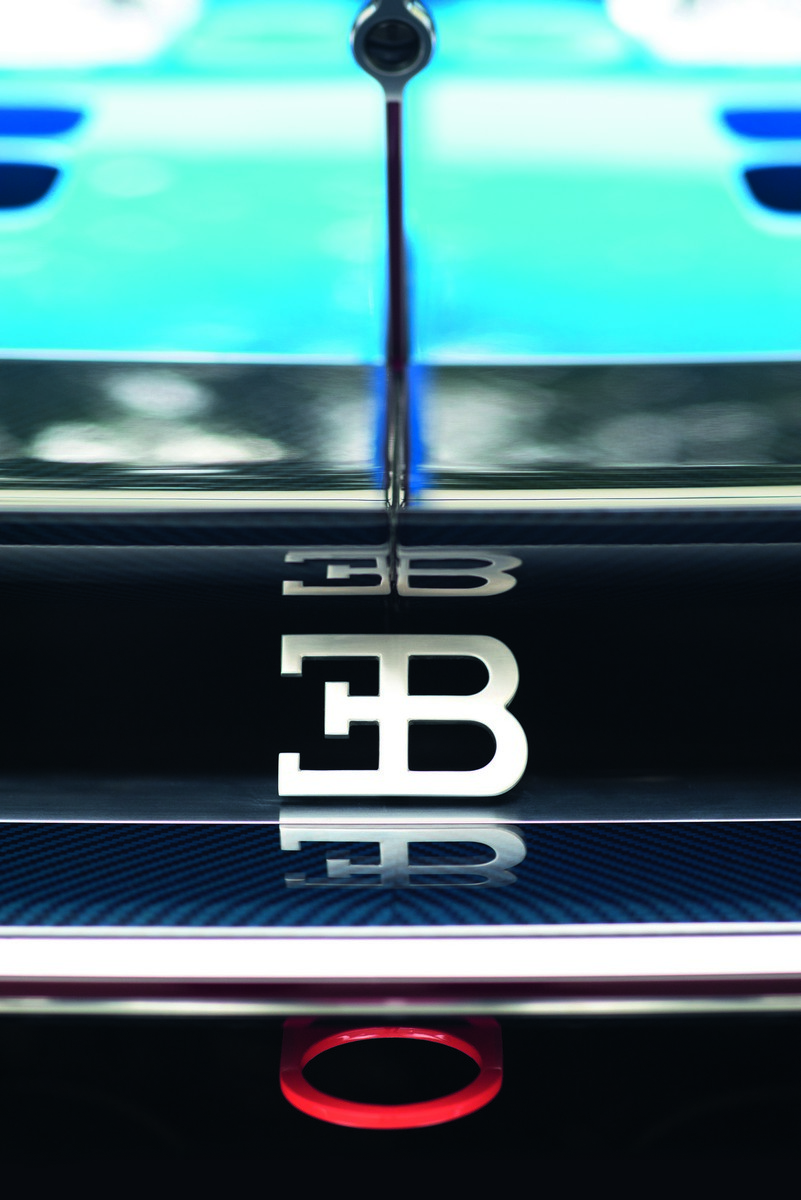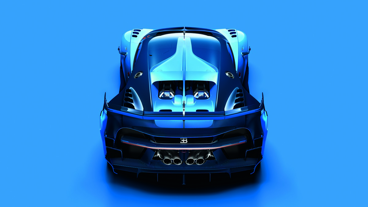 the rear of the vehicle has a strong trailing edge which provides excellent driving stability, exhausts the hot air from the engine compartment and, no less importantly, unmistakeably shows the virtual competitor that a bugatti is getting ahead and away from them.