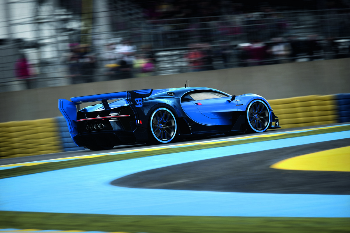 molsheim/frankfurt am main, 14 september 2015 a unique show car makes its world debut: bugatti has transformed its bugatti vision gran turismo from the virtual world of bytes and pixels into a real carbon-fibre racer specially for the 66th international motor show (iaa). in frankfurt the french super sports car brand unveils the project that it has designed exclusively for the playstation video game franchise gran turismo to thank its millions of fans worldwide for their loyalty and enthusiasm. following the sale of all 450 vehicles in the veyron series, bugatti vision gran turismo marks a new chapter in the luxury brand's history that will culminate in the unveiling of the new bugatti super sports car. the bugatti vision gran turismo design pays homage to bugatti's great racing tradition of the 1920s and 1930s, in particular its victories in the 24 hours of le mans race, and is based on cutting-edge motor sport technology. at the same time the virtual project also previews bugatti's future design language.
