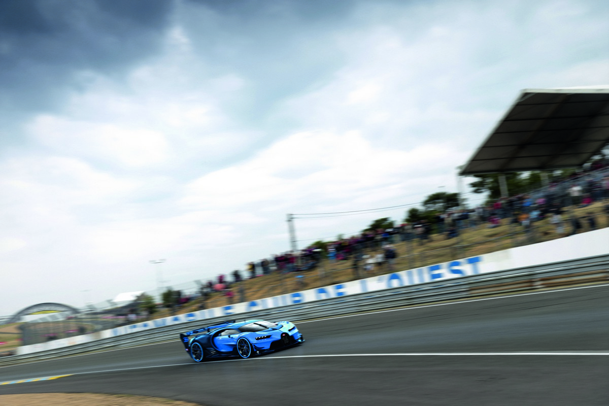 "le mans influenced the design of the virtual race car for vision gran turismo in two ways," continues anscheidt. "first, through bugatti's tremendous victories on the circuit there. second, this track with its long straights remains an emblem of top speed today, making it the ideal place for bugatti to show what it can do as a double world record holder." bugatti has held the record for the world's fastest street-legal production vehicle since 2010 with a speed of 431.072 kph (267.86 mph) and made its way into the record books again in 2013 with the world's fastest production roadster, clocking 408.84 kph (254.04 mph).