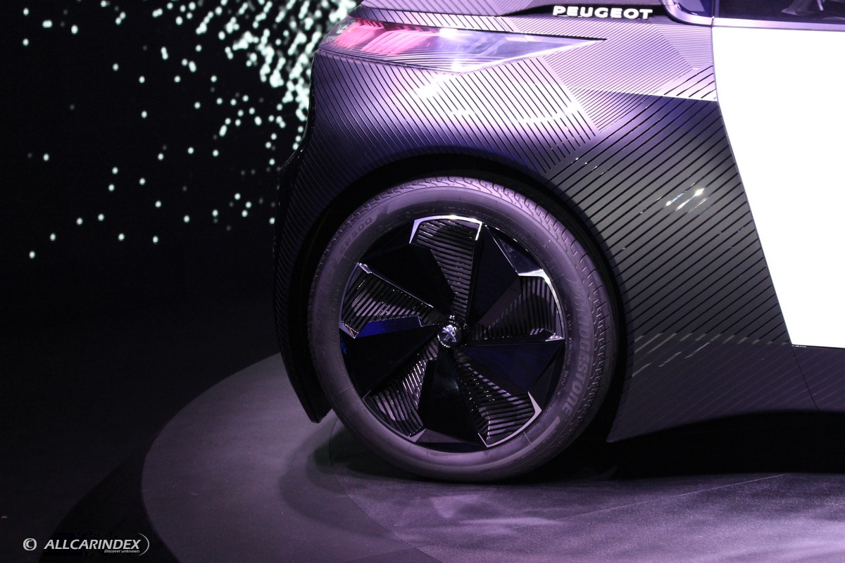 peugeot fractal is perfectly at home in the city. the already-low noise levels achieved by the electric drive system are further improved by the tall&narrow tyres, with their narrow tread. to achieve the highest standards in acoustic performance, the wheels feature dihedral components to attenuate aerodynamic noise. based on anechoic chambers, these additions reduce the intensity of sound waves, and therefore their noise levels, by causing them to bounce from one surface to another. this type of design is impossible to produce using conventional methods and was achieved through 3d printing.