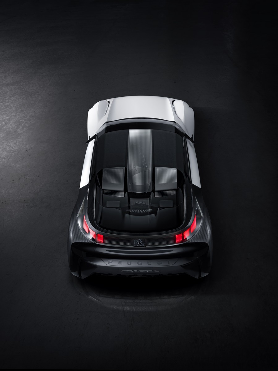 peugeot fractal strikes a natural balance and features an electric drive train enabling a new architecture. all components are positioned with efficiency in mind. the lithium-ion battery is housed in the central tunnel, which lowers the centre of gravity and improves weight distribution. it powers two electric motors, each delivering 75kw/102hp, fitted to the front and rear axles. the drive train enhances the aerodynamics of the car, an improvement reflected in the smaller intakes at the front, with less air needed for cooling.