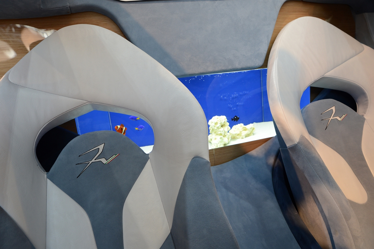 This year in Monaco FV-Frangivento shows their second model - the white and elegant open-top machine named Charlotte Roadster giving tribute to the Principality of Monaco, Côte D’Azur and Mediterranean culture. It is a fully electric hypercar taking inspirations from wildlife animals - swan and shark in the interior while the muscular, yet elegant, exterior reminds a galloping horse. Elegance, unique driving experience, pleasure and relaxation is all embodied inside the cockpit of the Charlotte Roadster. Special Sparco seats, elements resembling waves, Modena Interior paneling, luxury 3W Tout Bois veneer, exclusive leather from Atelier Foglizzo 1921 and even controls made from silver are in place to make the driver and passenger feel as if they are diving into the sea. A key feature that makes this outstanding automobile absolutely unique and emphasizes deep relaxation is a real and functioning aquarium behind the seats. It is a home for two fishes Nemo and Dory :) Moreover, at the bottom of the aquarium is a little bottle with the names of all those who took part in the project.