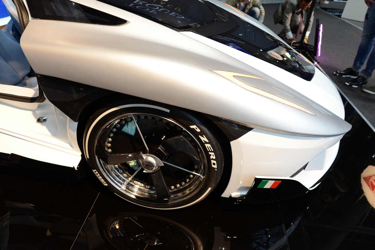 Among other stars on the showfloor was the unbelievable super automobile of the new Italian boutique manufacturer FV-Frangivento. This company established by innovative creators duo Giorgio Pirolo and Paolo Mancini presented first model - the Asfane - at Parco Valentino - Salone dell'auto Torino in 2016. At the end of last year they even took the car to the height of 2500m on the Tofana peak in the Dolomites UNESCO World Heritage Site.