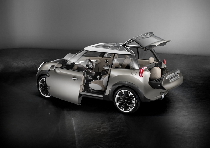 mini rocketman concept. when opened, the doors pivot outwards complete with their sills, enabling the driver and front passenger to climb in right next to their seats and get settled in comfort. entry to the rear seats is also made much easier by the car’s unusual door concept. the carbon spaceframe construction, together with the impressively high torsional stiffness of the underbody structure, allows the arrangement of the side sills to be combined with extremely high body rigidity.