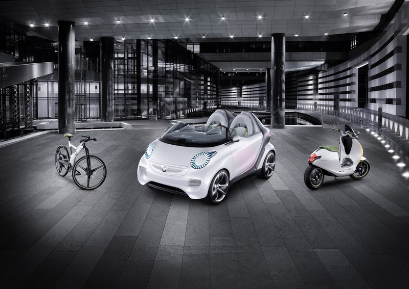 with its high-gloss white metallic paintwork the smart forspeed also builds a bridge to the two-wheel escooter and ebike studies that were presented at the paris motor show.