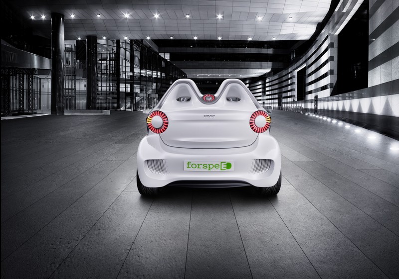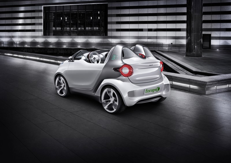 no roof, minimal windows and a responsive and zero-emission electric drive at the rear: the smart forspeed combines responsibility and emotional appeal in a new and pleasurable way. dr. annette winkler, head of smart says "the smart forspeed is a completely new take on how much fun it is to drive electric: it boasts a superb design with a powerful drive system and, needless to say, locally emission-free. and if you put the smart forspeed next to our ebike, escooter and smart fortwo electric drive you'll see that smart has realised all kinds of variations of electric driving - demonstrating that smart is not just a practical city car, but a great idea." the smart forspeed boasts an extremely innovative and self-assured design. prof. dr. h. c. gorden wagener, head of design says "the cult brand smart has always taken an unconventional approach with bold design. the forspeed now carries purist sportiness to extremes and in terms of form it is also a pioneer for a new paradigm of mobility."