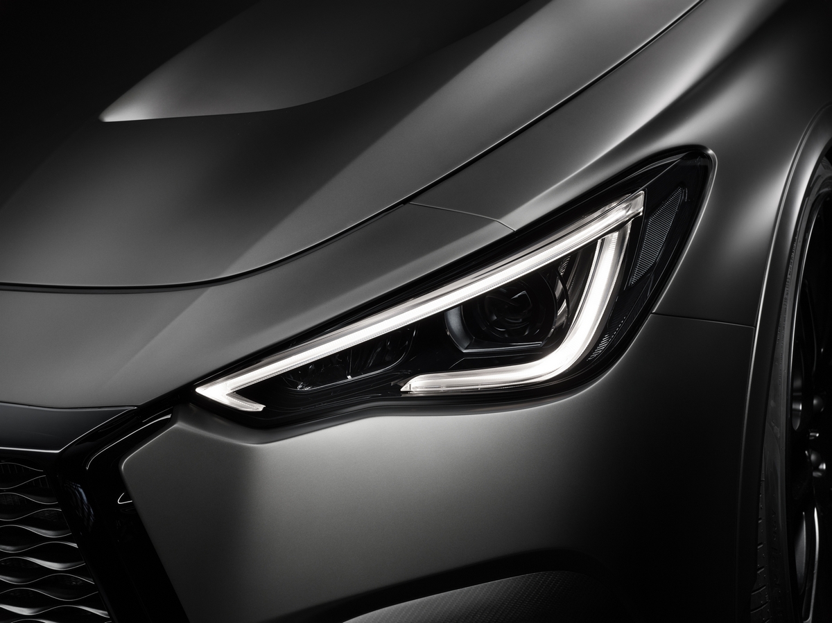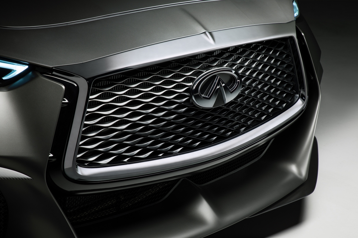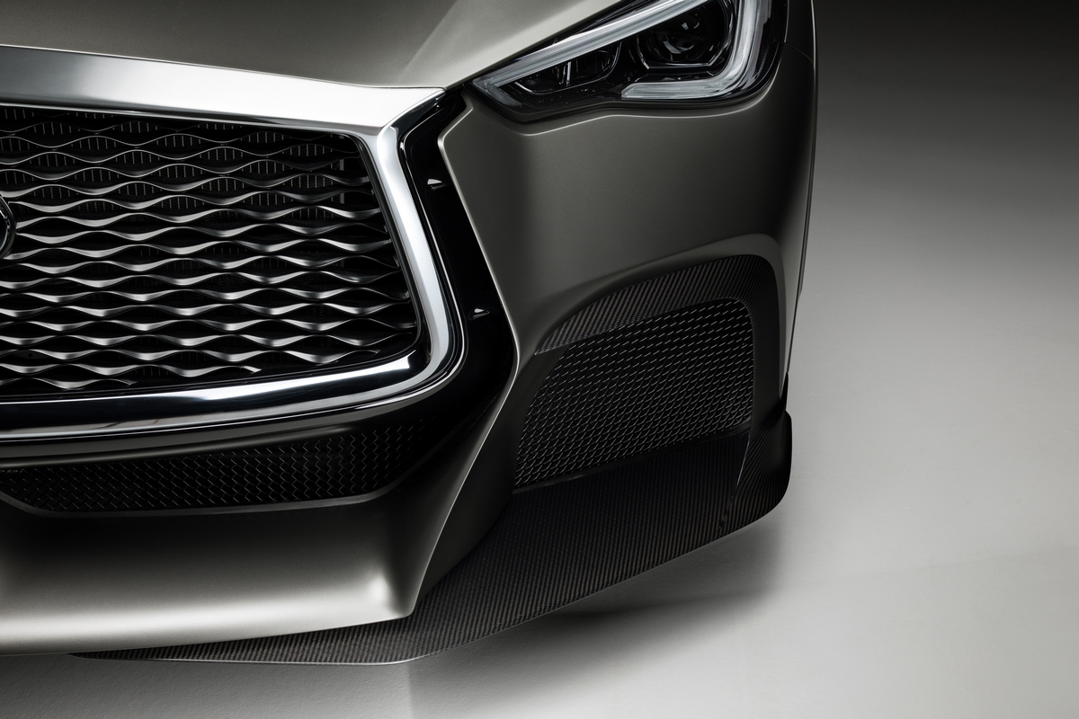 deep body stamping from the q60's manufacturing process allows the project black s to retain the sports coupe's deep creases and flowing lines. for the concept, infiniti designers have wrought a series of changes to create a more daring – even aggressive – design execution.