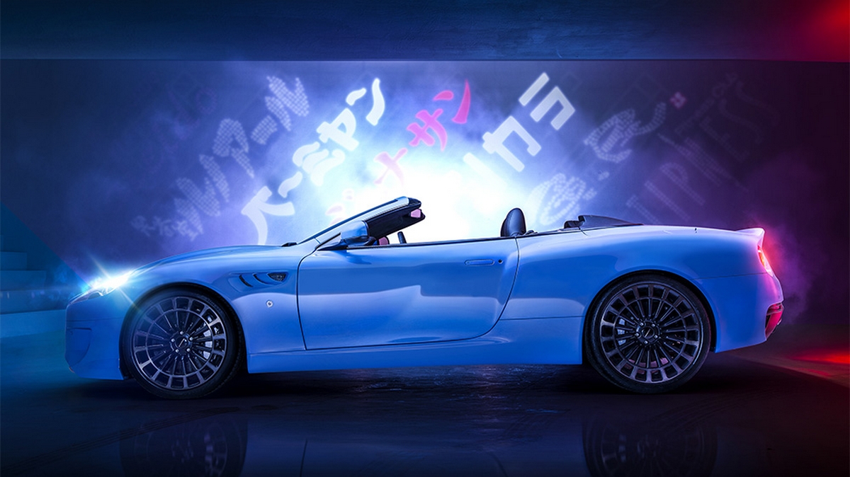 Details such as the purpose designed crosshair exhaust system and rear lighting, as well as the lightweight sculpted wheels are a nod to the Volante’s heritage, but with the top down, the lower profile silhouette enhances the muscular proportions of the car.