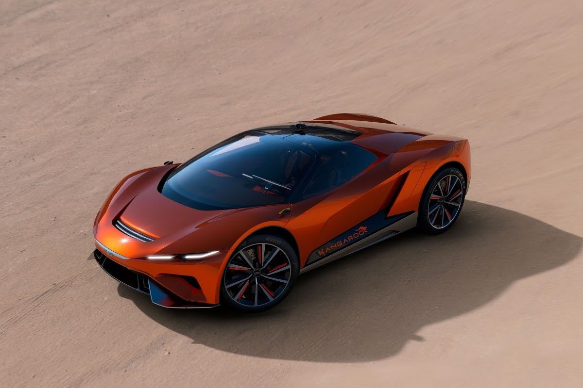 The new concept car by GFG Style, a two-seater, electric hyper-SUV with 4-wheel drive and 4-wheel steering, is called Kangaroo and its styling is a match for any terrain, thanks to its functionality and technology.