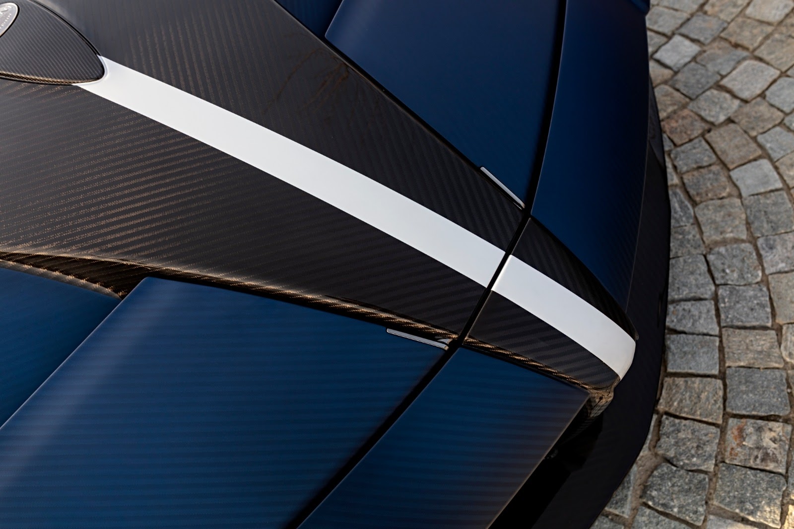 With fully exposed Blu Tricolore carbon fiber body in a matt finish and Bianco Malta white accents to enhance its outline: this is the colour combination proposed by the carbon-fiber craftsmen of Pagani Automobili for the Huayra Roadster on display, a true example of creative taste and attention to every detail.