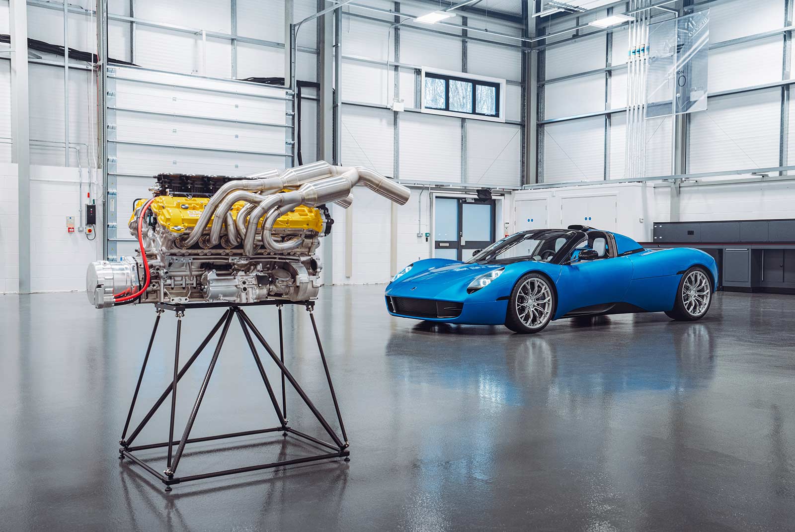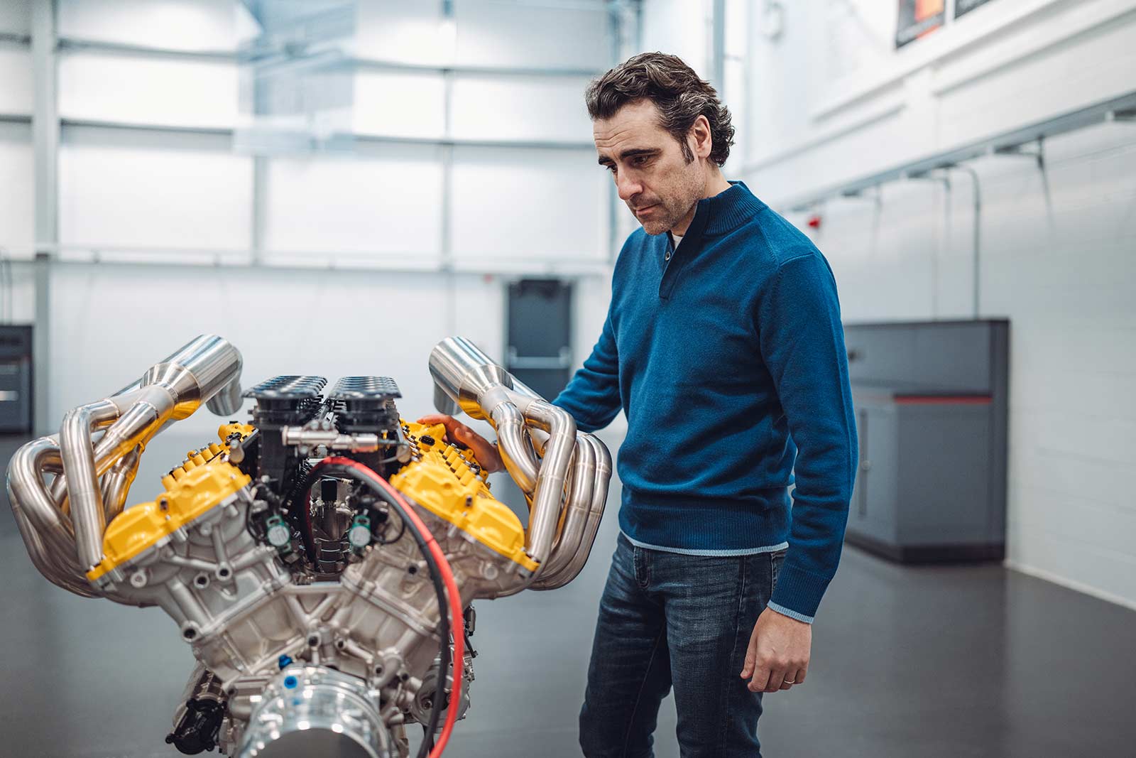 Addressing the fundamentals of high-performance engine design, the dry-sump, 3.9-litre unit features a 65-degree cylinder bank angle for optimum packaging within the monocoque, and contributing to the car’s low centre of gravity. Obsessively weight-optimised, the exquisite exhaust manifolds are crafted from inconel – lightweight and capable of withstanding extremes of temperature.