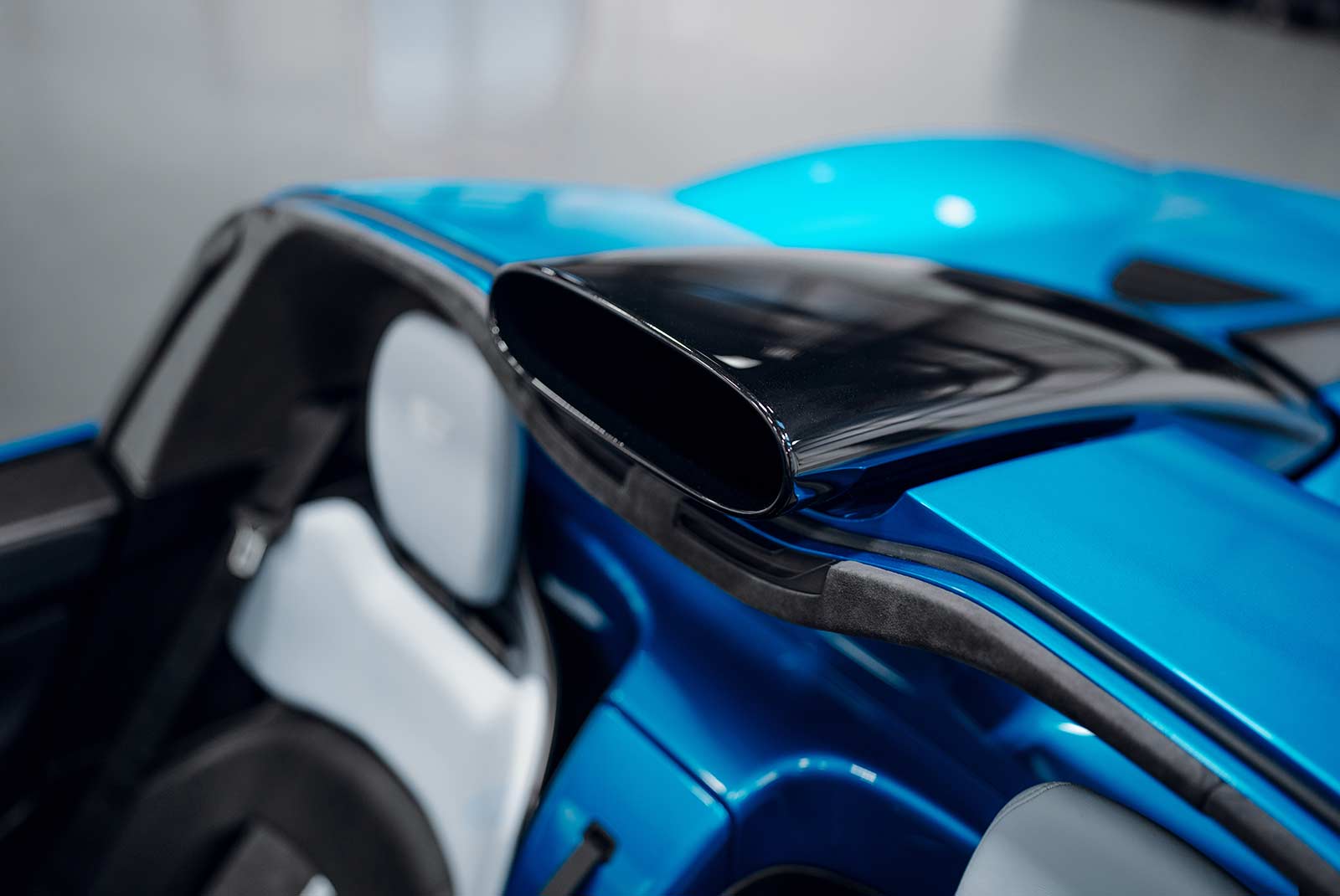 The fixed rear section of the roof, which provides rollover protection, is an integral part of the body design to optimise stiffness while delivering the design vision. Its form is carefully optimised to minimise drag and buffeting when the panels are not fitted, this faired-in design being more streamlined than the twin ‘humps’ behind the seats that are typical of a speedster body style.