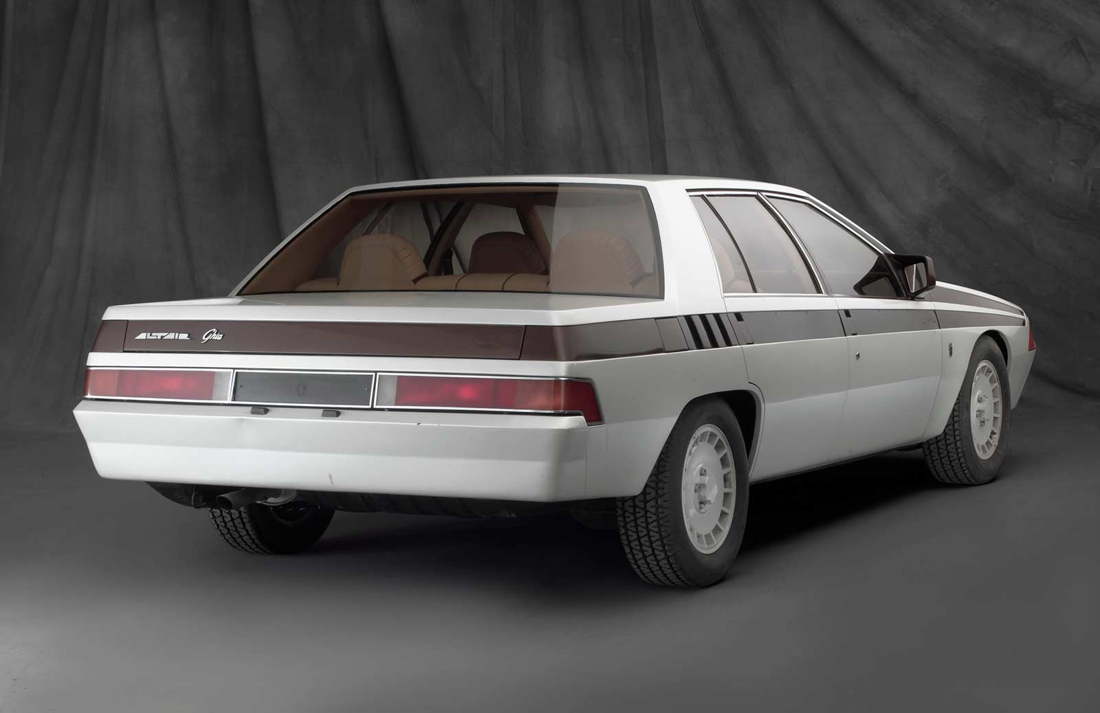 The exterior of the Altair featured a silver and bronze aerodynamic body with a predicted drag coefficient of .35, a significant improvement from the production model's .44. The front end was extended to incorporate an impact-absorbent front bumper and a deep aerodynamic front spoiler, while the overall height of the car was reduced to decrease the frontal area.