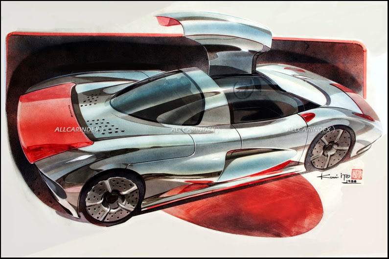 mr ito was a leading force in the design development of the jiotto’s supercar project. from the very early beginning the emphasis was placed on racing success and the japanese ideal supercar should have been a group c race car for public roads. sleek, aerodynamic lines are well stressed in the first sketches of the proposed car. noticeable aspect is a rear wing which was well conceived to flow into the rear end of the body. (see picture 2-3)