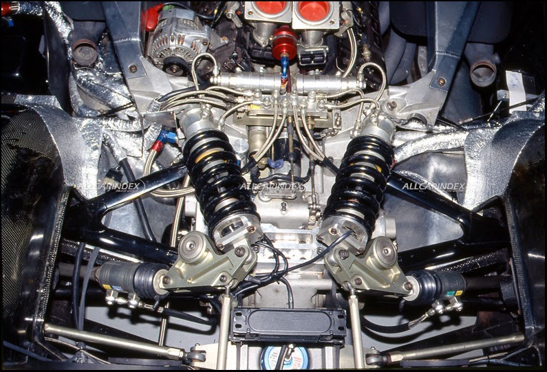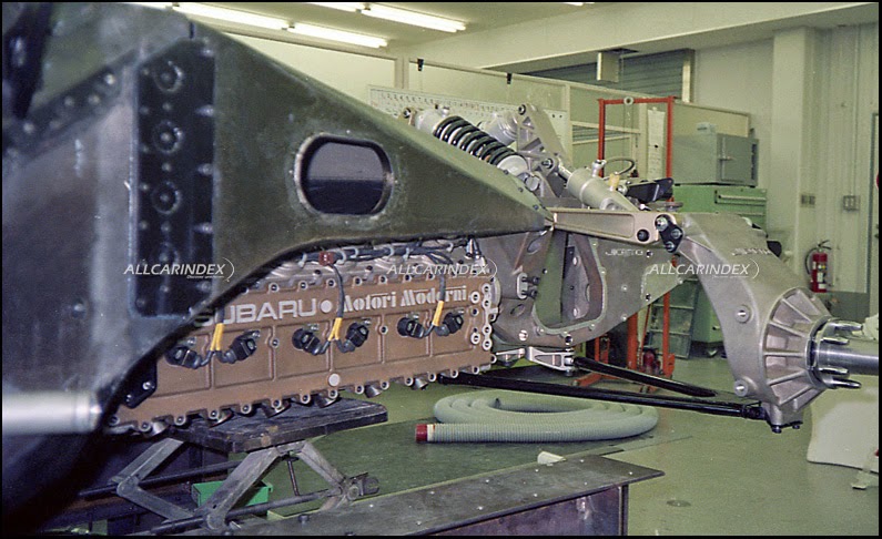 hiding under the skin was a truly amazing piece of engineering. this is where the third partner – subaru - stepped into the project of this japanese supercar. precisely subaru’s f1 engine (see picture 67-68) co-developed with italian company motori moderni was detuned to 450hp. this outstanding 3.5-liter flat-12 horizontally opposed power aggregate designed by carlo chitti was well fitted onto the aforementioned carbon composite structure. a maximum power as well as 363 nm of torque was transferred to rear wheels through a 6-speed gearbox built by american company weismann which at that time also served mclaren f1 team. this vast amount of power was connected to the road through huge tires – 245/40zr17 in front and even 335/35zr17 on the back. in addition to that, the clearance could be increased hydraulically from 7cm to 13cm!