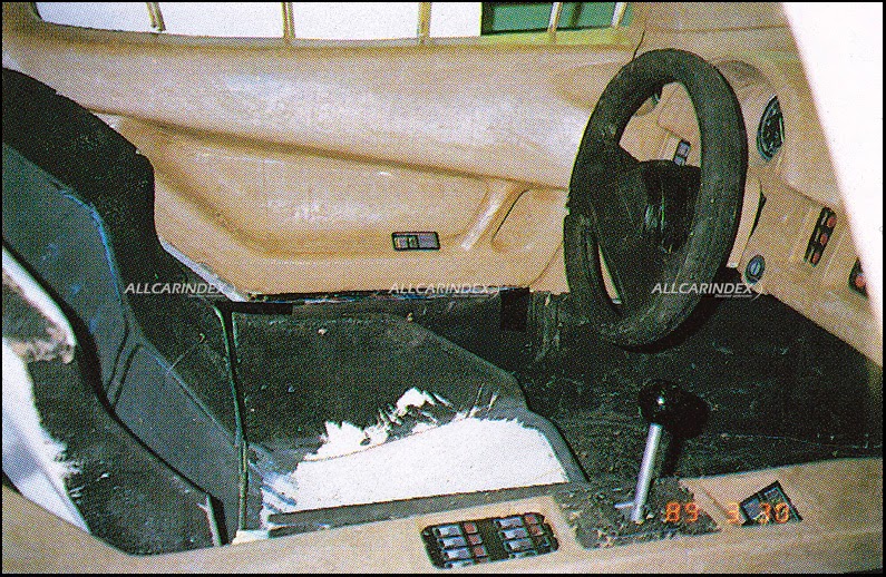 once the research on the exterior styling was established, jiotto design team led by mr kunihisa ito started researching supercars’ interior. likewise the exterior, cockpit design was also created through many various and much different styling studies. interior buck (see picture 38-39) was manufactured in early 1989 to better study and apply interior ideas. a chosen one was a sporty, functional but quite sophisticated. a tachometer with white digits was mounted centrally behind a lightweight twin-spoke steering wheel while all necessary switches were combined into the central console as well as dashboard. a smaller electronic led speedometer and fuel gauge was placed on the left. apparently, red and black accents were moved straight from the sketch to the actual car (see picture 28). the small lcd display was mounted for information on fuel and oil pressure. that’s it. no air conditioning, gps navigation, internet connection, cell phone charger and no cup holders. this may sound as a true spartan car, but it had to be driver’s car – a real high performance vehicle, a road-legal racer.