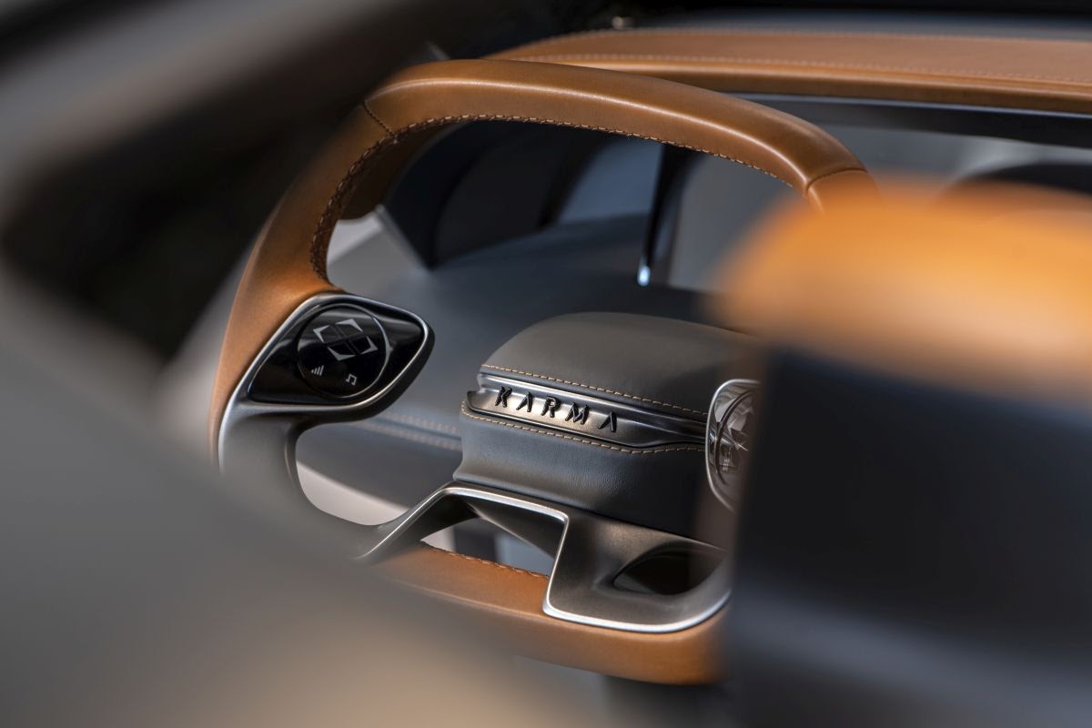 Long-range radars, cameras, and FMCW lidar sensors throughout ready SC2 for a safe and realistic autonomous future, while Karma’s Ultra Sonic Sensor Stalk technology supports launch control and regenerative braking, lending itself to a harmonious blend between regeneration and friction brakes. Vehicle entry is through fingerprint and facial recognition sensors. Inside the cabin, intelligent technology enhances the user experience: Biometric seats and steering wheel provide both control and comfort, 3D audio creates individual sound zones for driver and passenger, and electro chromatic glass shifts from clear to opaque for privacy and light sensitivity.