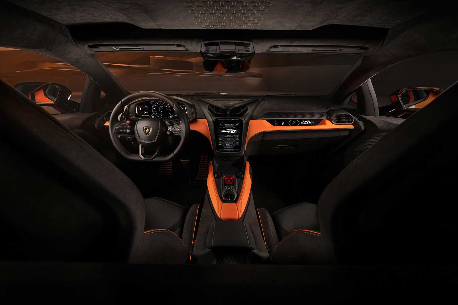 ‘Sustainability’ continues throughout the car’s interior, reflecting the company’s attention to avoiding waste that has become the modus operandi of the Lamborghini universe. This includes upholstery materials, cut in the Lamborghini ‘selleria’ utilizing latest-generation machinery: this limits waste as much as possible without affecting the craftmanship and embroidery processes, in which ‘hand-made’ continues as a point of excellence within Lamborghini.