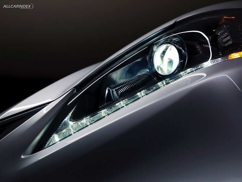 the signature spindle grille with its trapezoidal contours evolved from current lexus styling and fully integrates into the aggressive front bumper allowing for efficient airflow. this distinctive lexus design feature combined with the deep-set, high-tech headlamps and l-shaped led daytime running lamps further express the vehicle’s confident and dynamic character. the headlamps use a projector beam design, adding a strong, chiseled appearance and excellent illumination.