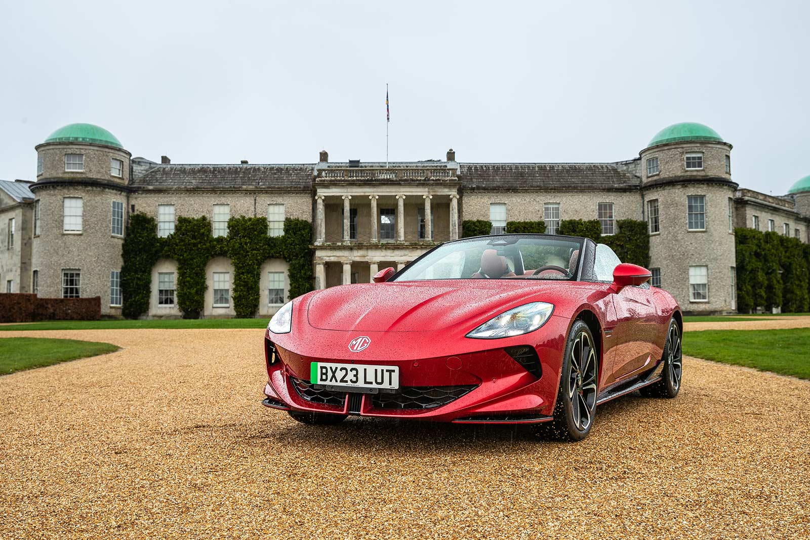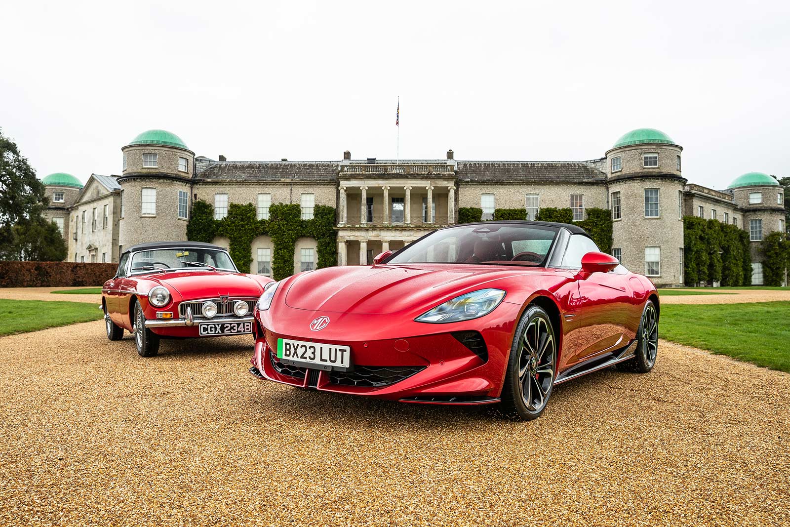 To kick off the partnership with the Goodwood Festival of Speed, the Cyberster was joined by a classic 1964 Mk1 MGB Roadster with a 1.8-liter BMC engine outside Goodwood House. This nostalgic pairing of MG roadsters from different eras sets the stage for a memorable showcase at the Festival of Speed.