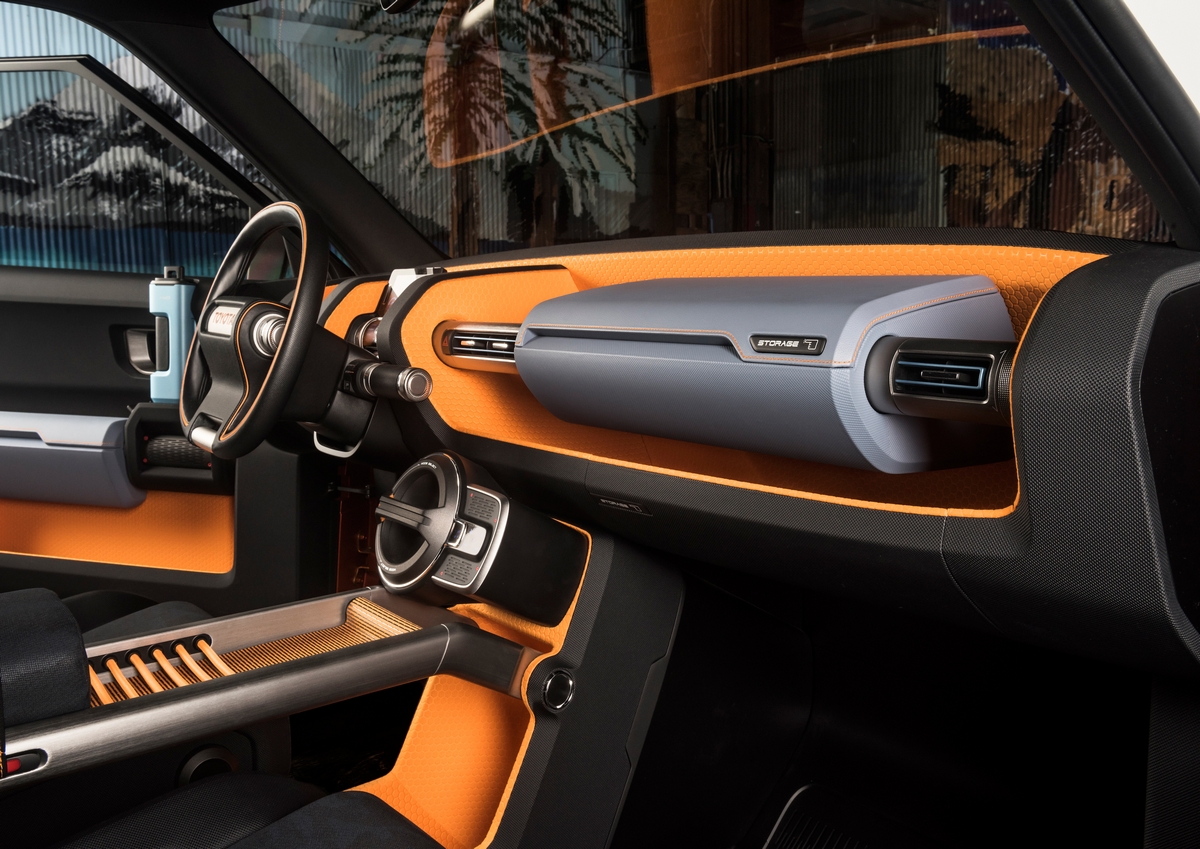 Casualcore adventures originate in the city. Knowing this, Calty’s designers instituted a Rugged Charm ethos when creating the FT-4X. Rugged Charm places value on simplicity, capability, durability, and Toyota lineage. Furthermore, it takes into account compact, sturdy dimensions, and a charming ubiquitous tactility of grips, handles, and controls (the notion of feeling a satisfying mechanical reaction to a user’s input).