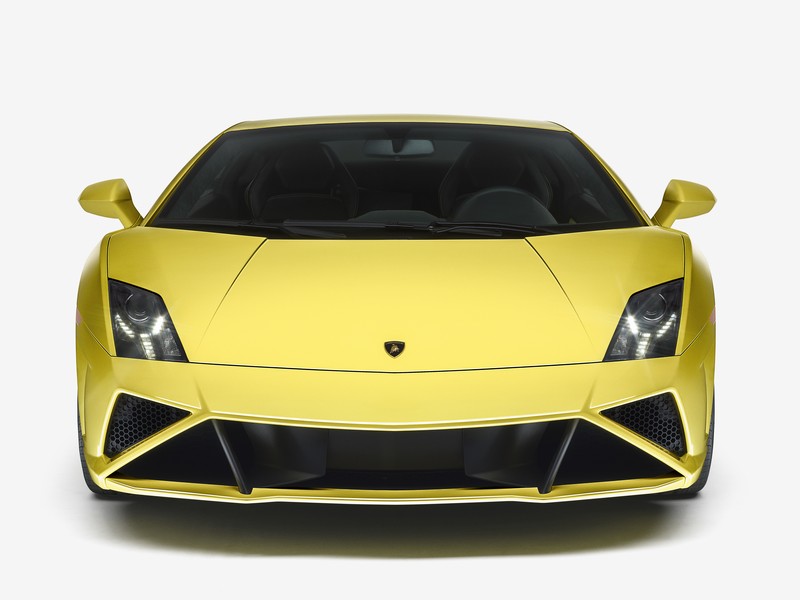 the gallardo design has now been further accentuated in the new gallardo lp 560-4. the new front end is characterized by triangular and trapezoidal forms – two shapes that are highly typical of the lamborghini design language. divided by diagonal elements in body color and in black, the overall look of the front end is broader and more forceful, giving it an even stronger bond with the road.
