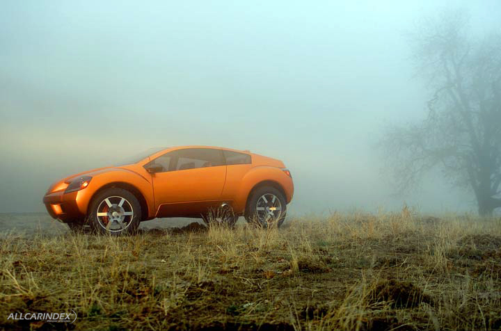 The exterior was finished in a dayglow metallic, anodized orange paint scheme inspired by race car exhaust manifolds. High ground clearance and large-diameter, 19-inch aluminum alloy wheels added to the aggressive styling.