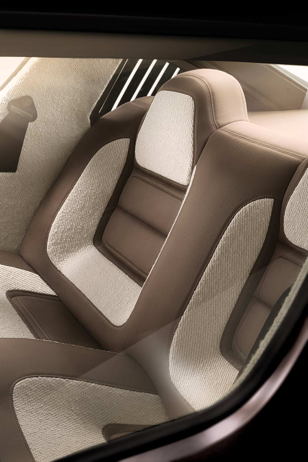 The exterior is finished in a bespoke Galactic Brown color, specially developed for the show car. This hue adds a contemporary sheen to the car’s retro-futuristic design.