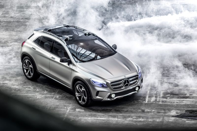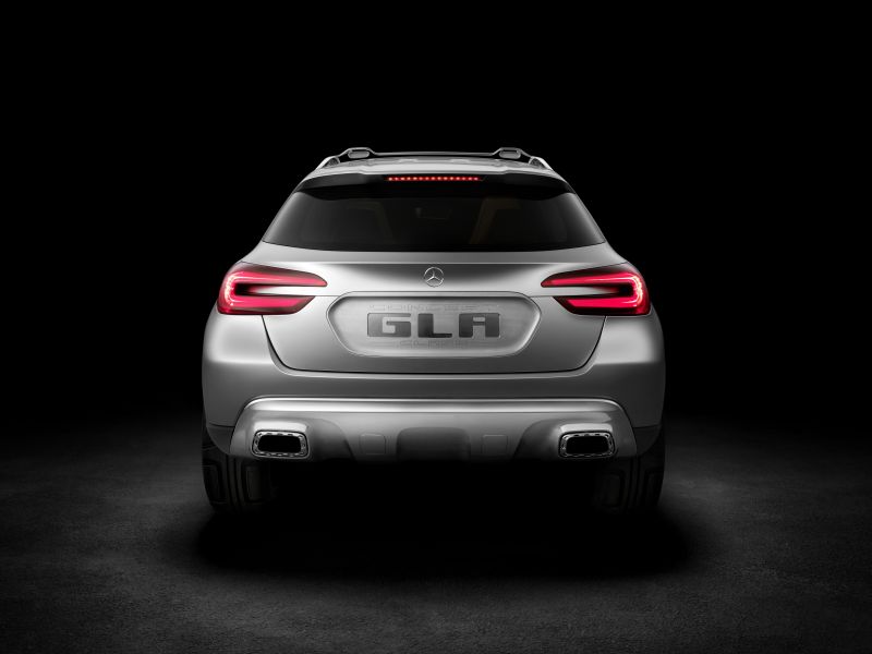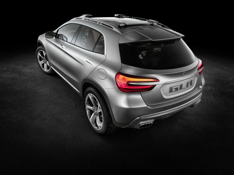 mercedes-benz will be showing a compact premium-class suv at the "auto shanghai" motor show (21 to 29 april 2013) in the form of its concept gla. the concept gla combines dynamic styling with clear benefits for recreational use. under the bonnet of this new concept vehicle (length/width/height: 4383/1978/1579 millimetres) sits a four-cylinder turbocharged petrol engine rated at 155 kw (211 hp) with a displacement of 1991 cc. its power is transmitted to the road via the 7g-dct dual clutch automatic transmission and 4matic all-wheel drive. a new approach is taken here in the form of headlamps featuring laser technology: these not only shine more light on the road, but also function as projectors.