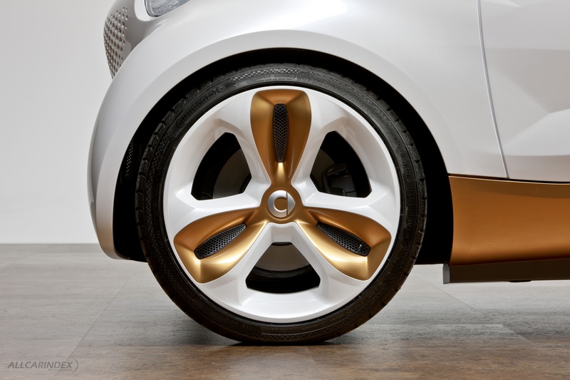in the smart forvision a world first leads to a considerable weight reduction and a unique design: the first all-plastic wheel suitable for high-volume production. in its current development status, the wheel developed by basf from a new high-performance material results in a considerable weight saving of three kilograms per wheel. unlike conventional polyamide composite materials this new plastic has long reinforcing fibres which improve its mechanical properties. the result: excellent thermal and chemical stability, dynamic strength, toughness and good continuous operating characteristics. first intensive product tests at smart show the performance capability of the all-plastic wheel and confirm the potential for possible use in production vehicles.
