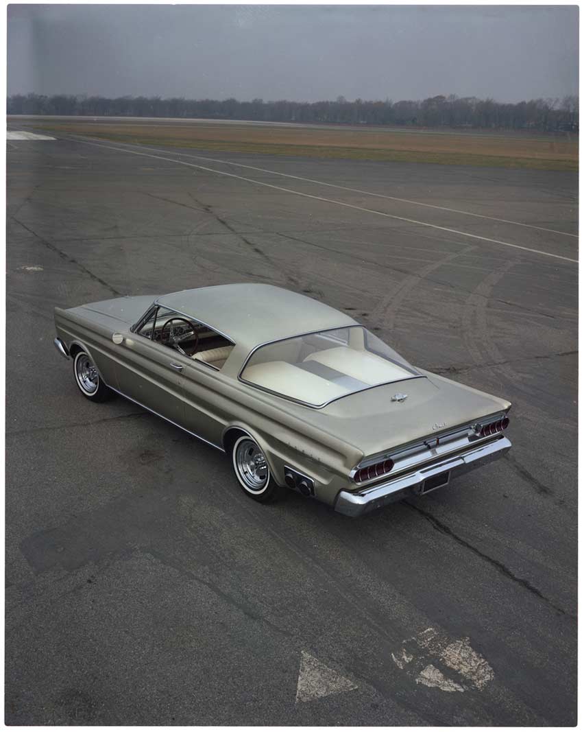 Based on the standard 1964 Comet Caliente two-door hardtop, the Super Cyclone is a highly customized version with experimental styling and engineering innovations. One of the most notable features is the aerodynamically designed roofline that extends seamlessly from the windshield to the back panel, creating a sleek "full fastback" design.