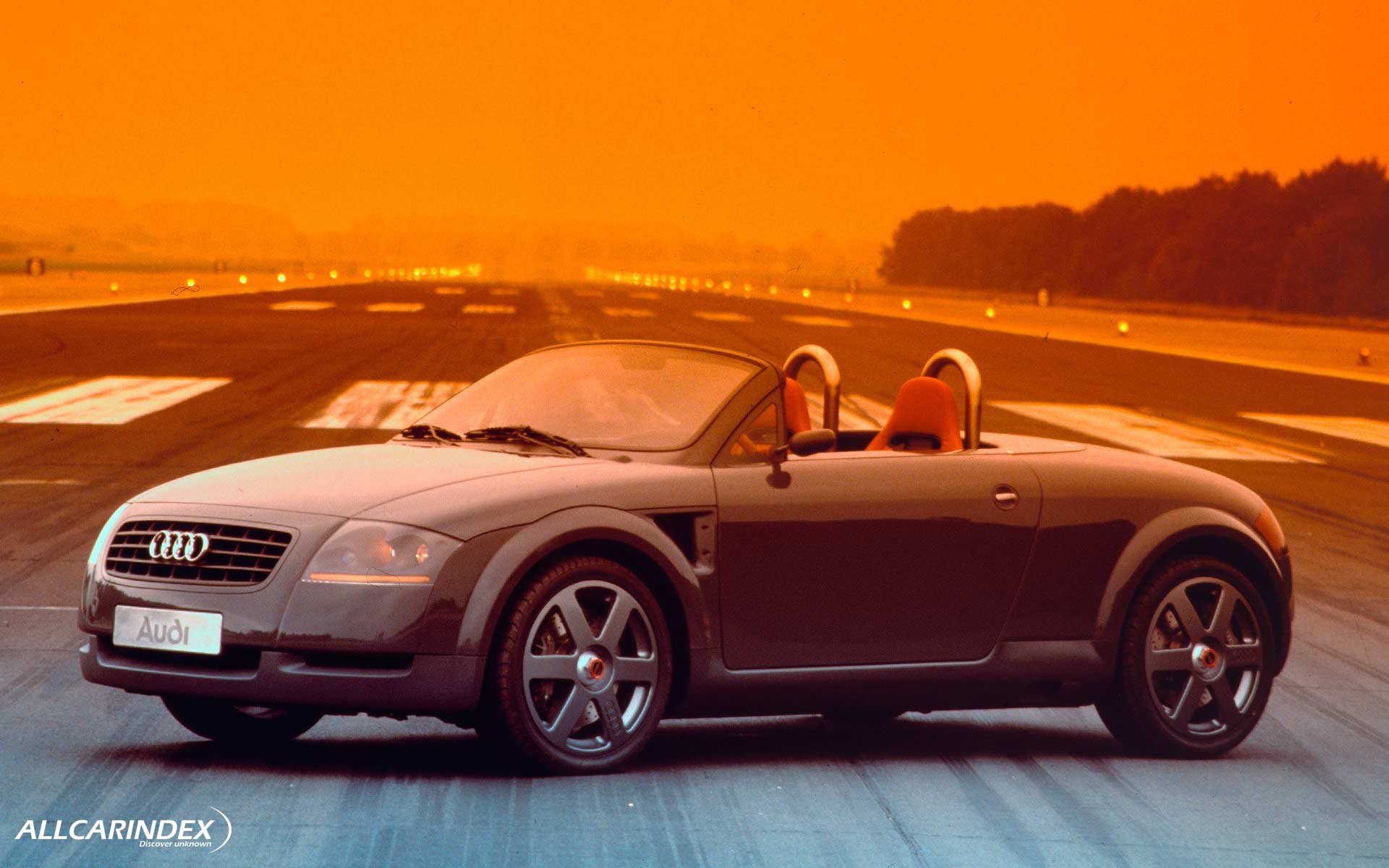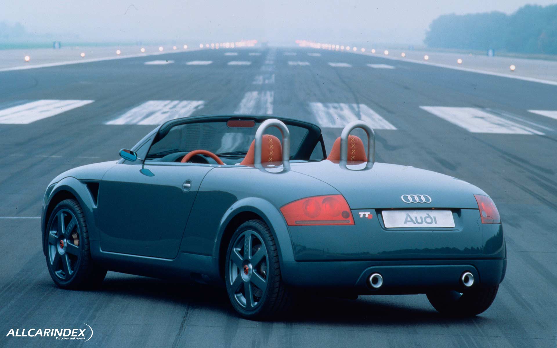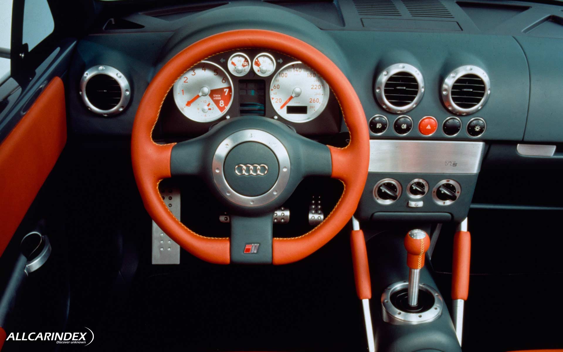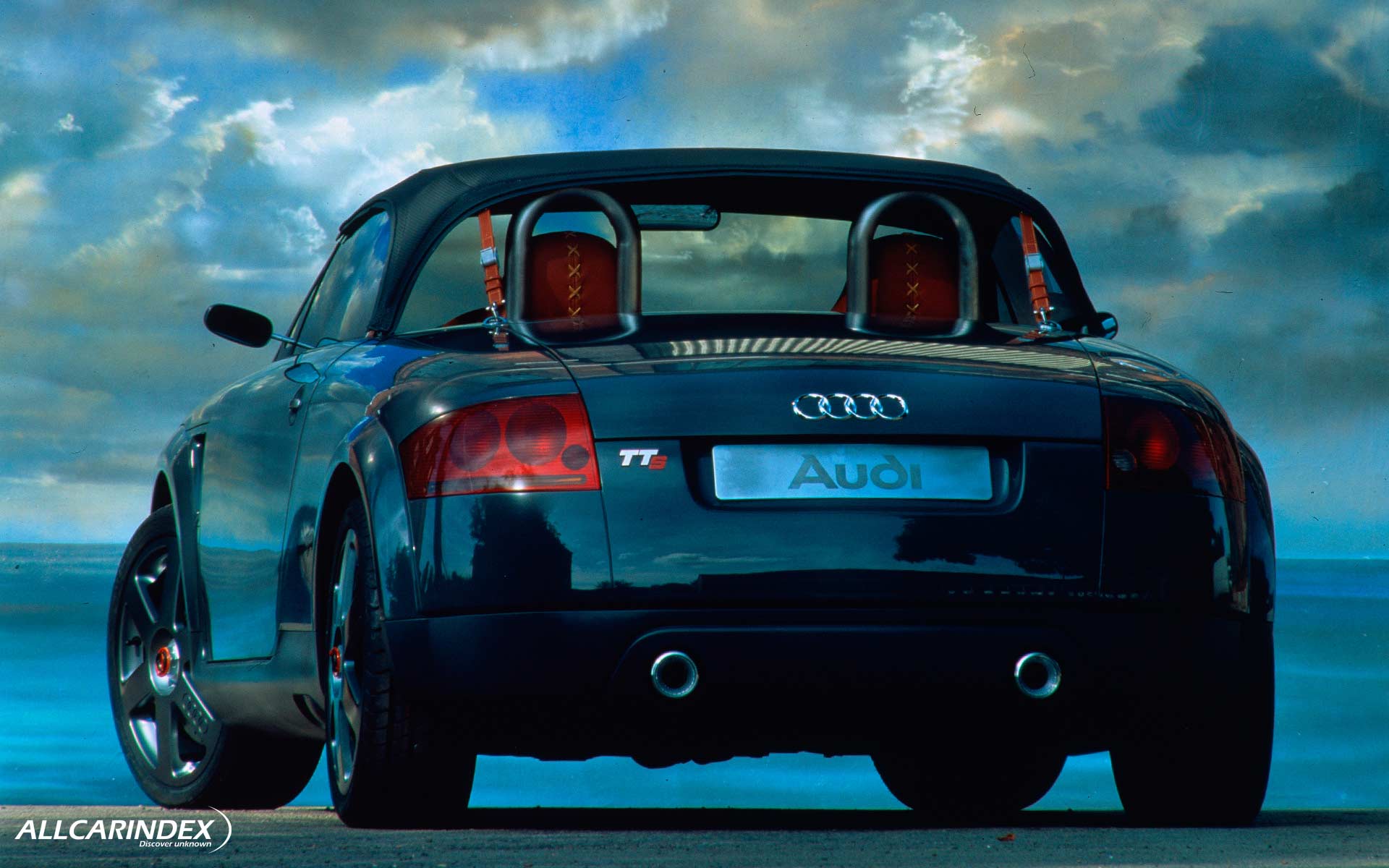 One of the most captivating ideas of Audi's young, avant-garde team of designers and engineers, the TTS Roadster featured an open body styling with fixed, integral roll bars and a fabric soft top that could be stretched tent-style. The engine, denoted by the "S" in the "TTS" badging, was a concept study for a powerful sports version of the 1.8-litre turbocharged unit, producing 154 kW (210 bhp) and 250 Nm of torque for vigorous pulling power.