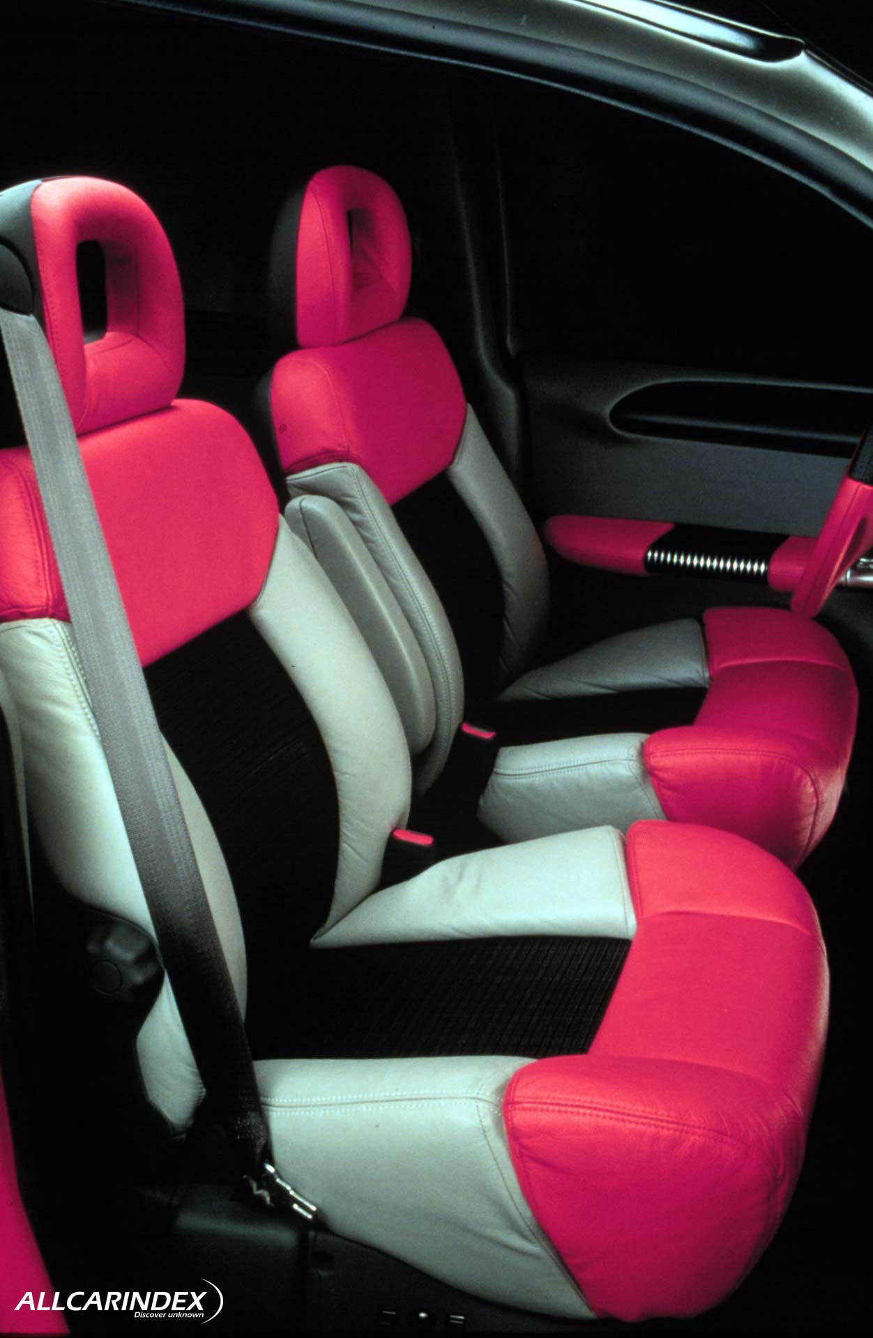 Inside, the Thunder offered seating for six individuals with lightweight construction and breathable webbing for added comfort. The futuristic instrument cluster blended Pontiac's performance heritage with innovative LED technology. The interactive RTT display provided real-time information about vehicle systems, and the unique cluster lighting offered a customizable experience for the driver.