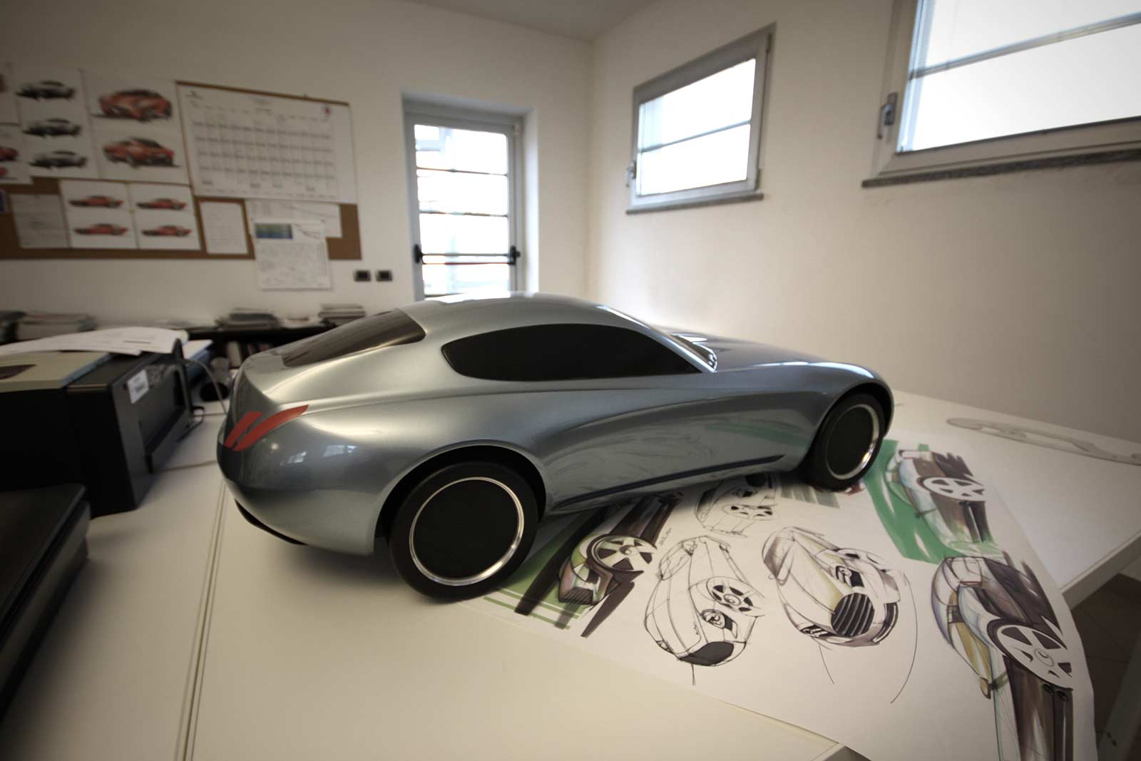 The Carrozzeria Touring Superleggera style was eloquently expressed through perfectly balanced volumes, featuring a reduced front overhang, a front central engine, and a large rear overhang. This dynamic form eliminated the need for a lowered waistline, with horizontal lines contributing to a natural elegance.