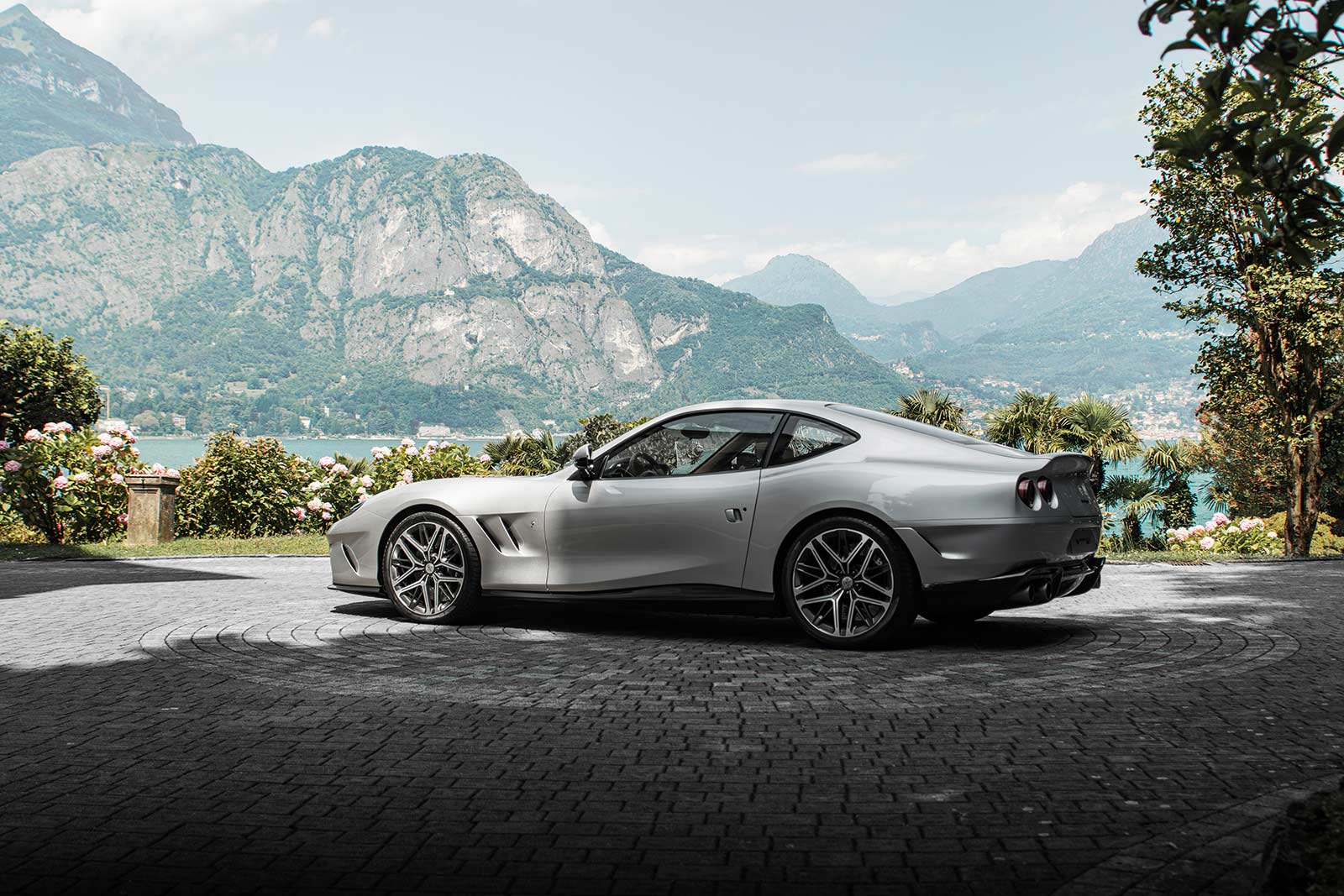 The Veloce12’s design is a harmonious blend of Touring Superleggera’s storied past and cutting-edge innovation. The car’s body is crafted from lightweight carbon fiber, a material that not only reduces weight but also allows for a design that is both exotic and elegant. The flowing lines, sleek surfaces, and gracefully defined curves of the Veloce12 are a nod to the golden age of mid-20th century Italian coachbuilding while embracing a bold vision of the future.