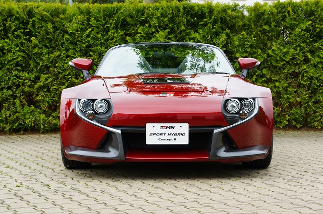 the grmn sports hybrid concept ii is an updated version of a gasoline-electric sports concept shown at tokyo auto salon 2010 and has been developed to embody the enjoyment of automobiles. the vehicle features advanced styling and an improved sports-hybrid awd system with the main power unit (gasoline engine, rear-wheel drive motors and transmission) located in the middle of the body and a front-wheel drive motor in front—all positioned to improve maneuverability, enhance driving enjoyment and provide enhanced stability. meanwhile, top-down driving in electric-vehicle mode gives a fresh and exhilarating driving experience.