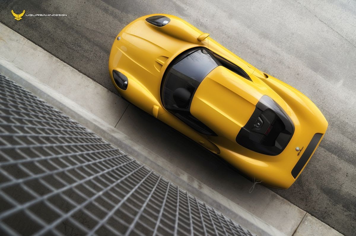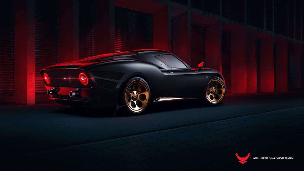 As it would have been too easy just to copy the original closely, I decided to go the hard way and develop a production ready concept, based on existing Alfa Romeo chassis. Because of the nimble size as well as the ultra-light weight of the original vehicle, it was only common sense to develop a design based on the fabulous Alfa Romeo 4C underpinnings. That created a huge challenge, as the proportions and hard points of the 4C chassis are quite different to the original Alfa 33 Stradale. In order to get closer to the proportions of the Stradale 33, the rear of the car was extended in length in order to create sleek rear fenders that extend all the way back to the edge of the rear end.