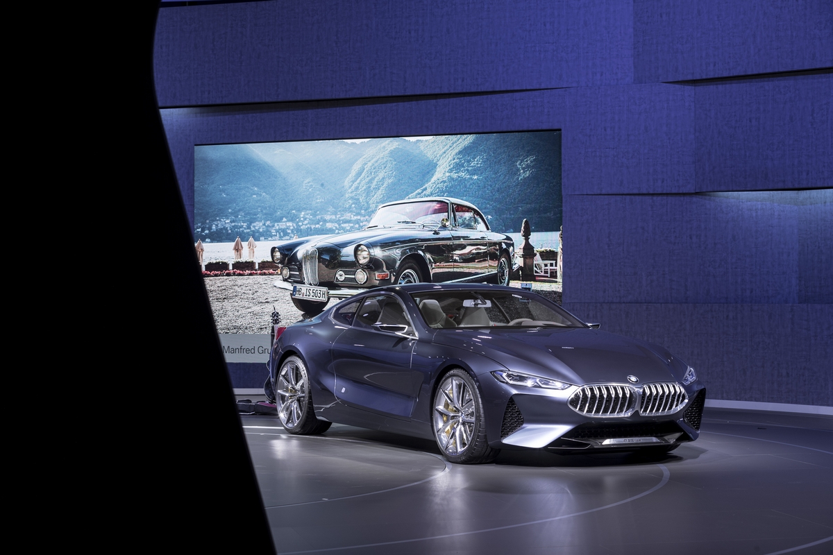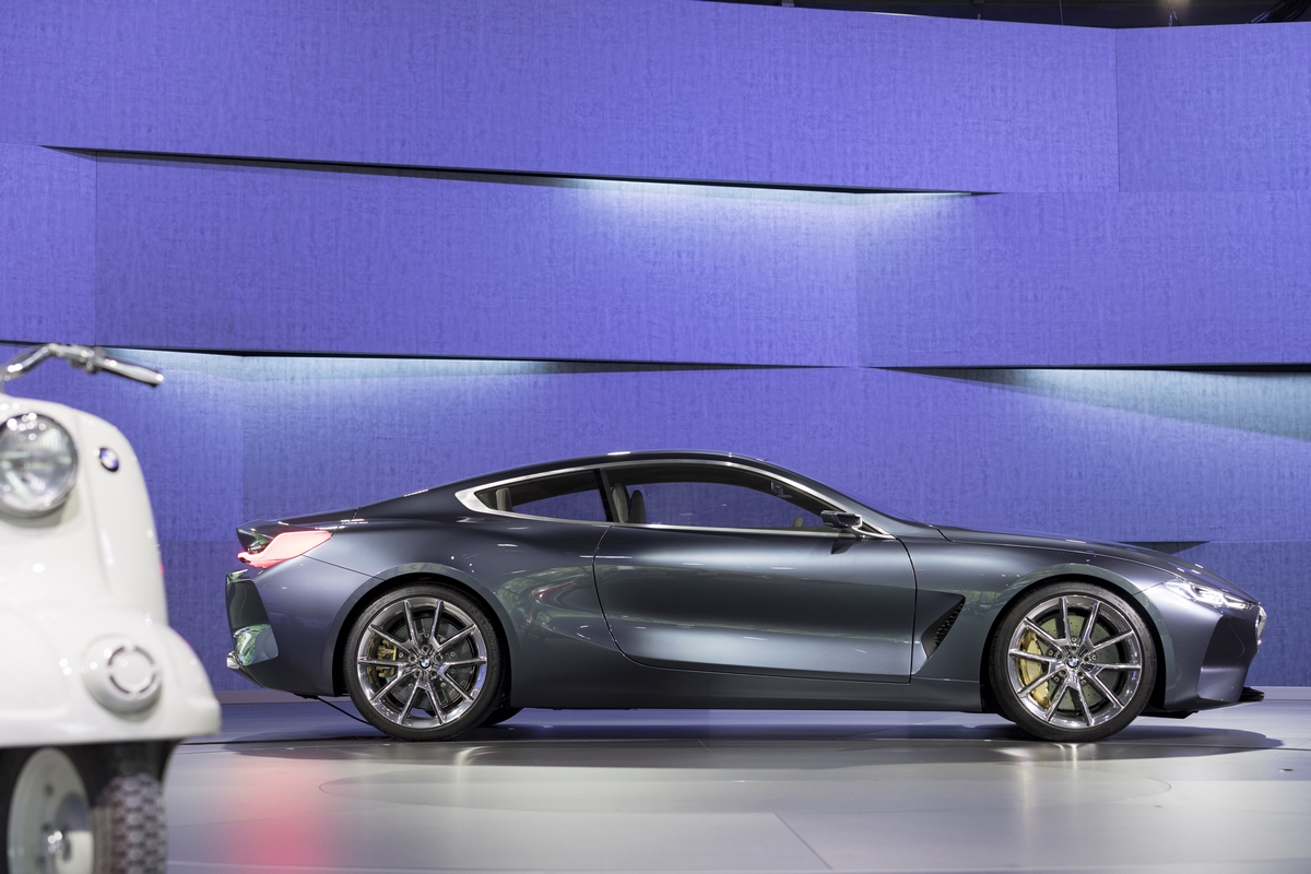 at the launch of the concorso d’eleganza villa d’este 2017, the bmw group presented two spectacular concept vehicles on the shores of lake como. they conveyed fascinating perspectives on the future of individual mobility. the bmw concept 8 series is the precursor to a luxurious sports coupé that will already be presented in the marketplace next year. the bmw group uses this coupé to give a vision of a sports car combining uncompromising dynamic performance with modern luxury. the study continues the successful tradition of large coupés from bmw and interprets classic design attributes in a new language of form. this is expressed in clear and precise line contours and powerful choreography of surfaces.
