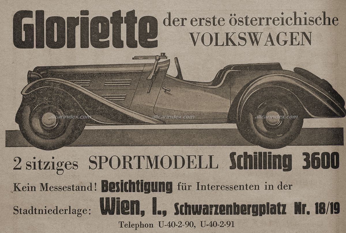 Gloria Automobilfabrik was an Austrian automobile manufacturer based in Brunn, active from 1932 to 1938. The company was founded with the intention of producing innovative vehicles, and its early designs included the Gloriette, which featured a 4/20 PS engine and a backbone frame. This model was conceived by designer Hans Pitzek, but financial difficulties hindered its full development.