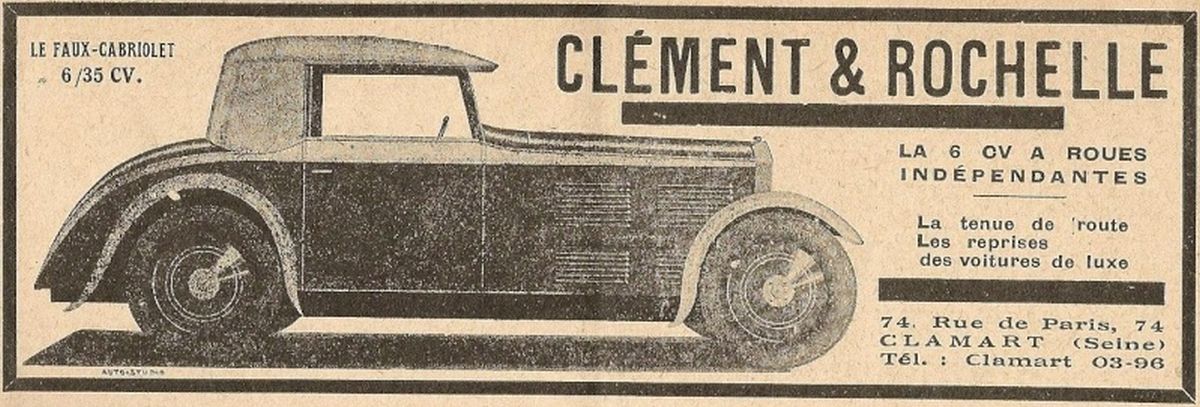 Clement et Rochelle offered various body styles, including a cabriolet, a faux-cabriolet (coupe), and a two-door saloon. The suspension system was independent all around, utilizing transverse leaf springs. The front suspension employed stub axles that slid on guides, reminiscent of a double version of the Morgan system, while swing axles were used at the rear. In total, approximately 100 vehicles were produced during the company's brief existence.