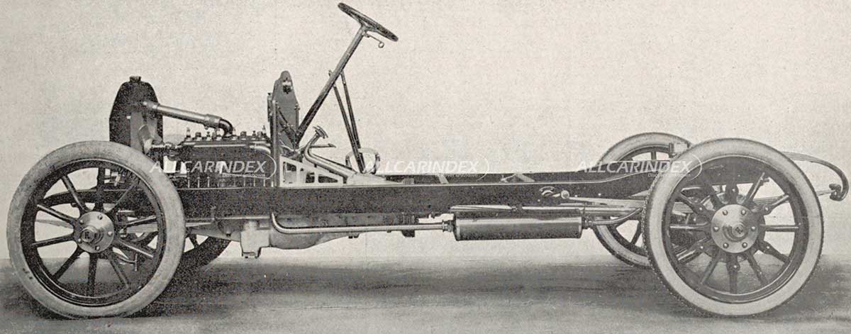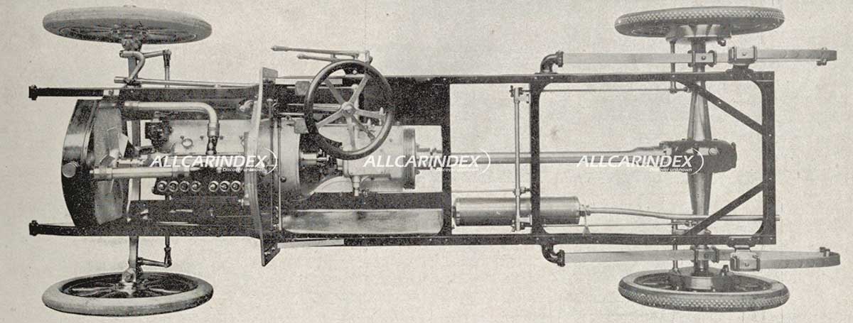 The F.L. was a conventional automobile equipped with a 2009cc 12/16hp four-cylinder monobloc engine. This innovative design featured an integrated engine, flywheel assembly, and gearbox, all connected as a single unit. The F.L. was later joined by a six-cylinder variant that maintained the same cylinder dimensions, resulting in a total engine capacity of 3014cc.