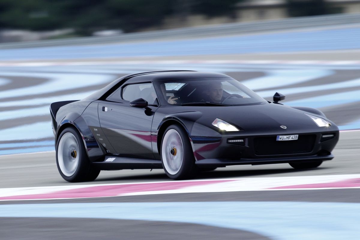 New Stratos was a privately funded project to create a modern successor to the Lancia Stratos. Initiated by German entrepreneur Michael Stoschek (with his son Maximilian) and executed by Pininfarina, the one-off New Stratos was completed in 2010 on a shortened Ferrari 430 Scuderia platform with a 4.3-liter V8 and carbon-fiber body. The car undertook testing at Balocco and appeared in events including Rally Isla Mallorca as a zero car in 2011, while development news and technical notes were published by New Stratos GbR. After Ferrari objected to wider use of its platform, low-volume production was deferred.
