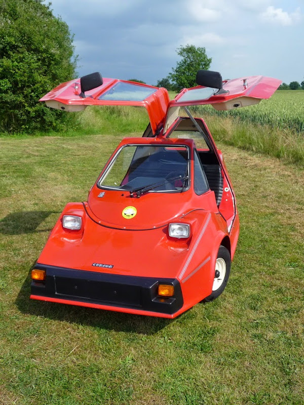The vehicle featured a fiberglass body mounted on a tubular steel chassis, with a mid-mounted 49cc Suzuki CS50 moped engine. It achieved a top speed of 30 mph and boasted impressive fuel efficiency, consuming approximately 90 miles per gallon. Following the initial production of around 50 units, a two-seater version was developed, which included a more powerful Suzuki CP50 engine and gull-wing doors. The final ten units of the two-seater variant were equipped with Honda Vision moped engines.